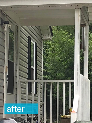 Once accepted and approved for funding, our Building Committee rallied together and quickly began the process of transforming the outside of her home. After replacing the rotten beams, ensuring the hand railings were stable, and cementing and sealing the steps, the structure of Willie's porch was safe and secure. To top off the project, the Building Committee gave both porches a couple of coats of crisp white paint.